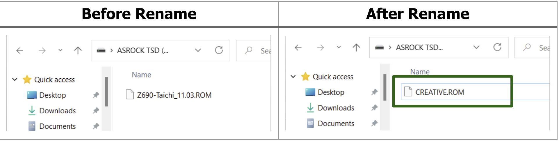 - Rename the BIOS .ROM file to “CREATIVE.ROM”