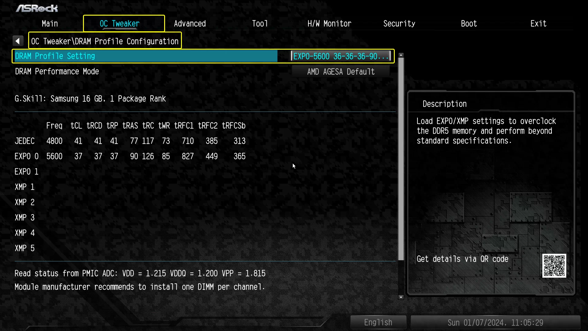 - For AMD processor systems: Go to OC Tweaker > DRAM Profile Configuration > DRAM Profile Setting > update from Auto to Profile 1
