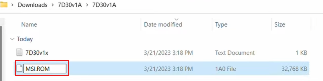 - Right click on the BIOS file and rename it to "MSI.ROM" in all caps