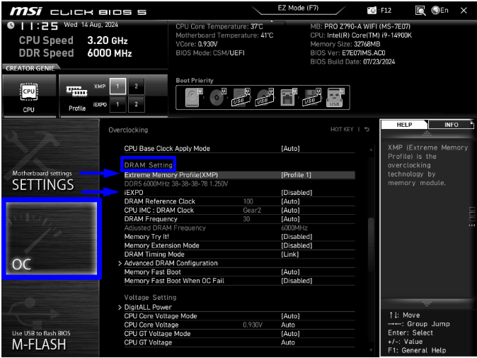 - Finally, we need to set your RAM profile to run at their full speed. Set it to Enabled or Profile 1. For systems with AMD processors, this is known as DOCP or EXPO, for Intel systems it is known as XMP.