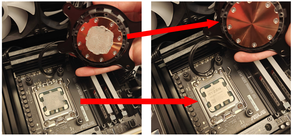 Before and after cleaning old thermal paste on CPU and the AIO cold plate