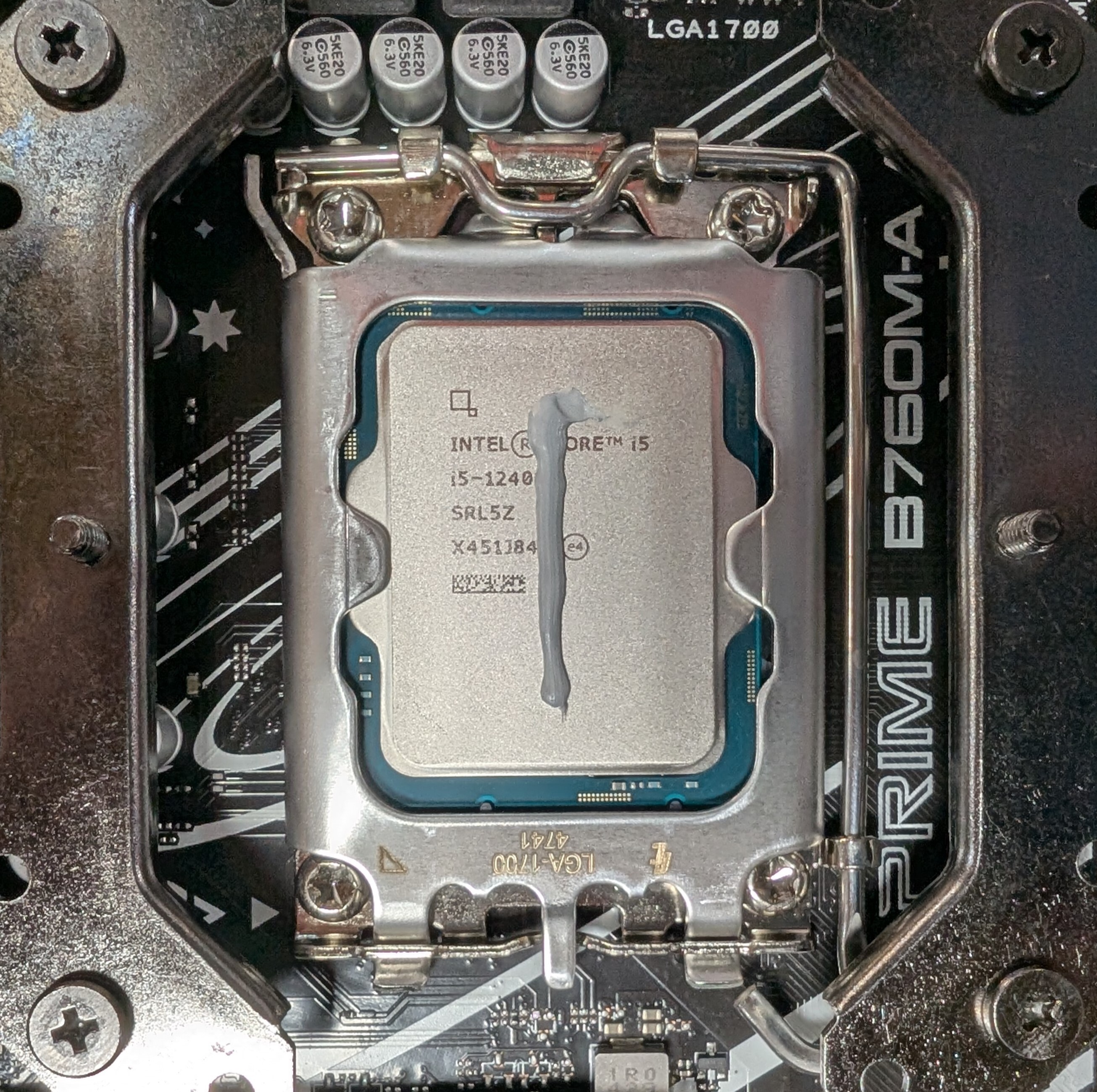AMD AM4 + AM5 CPUs are more square, and roughly a pea-sized dot of thermal paste will spread enough to cover the entire IHS | Intel 1700 + 1851 CPUs are rectangular, so a straight line down the middle should spread enough to cover the entire IHS |