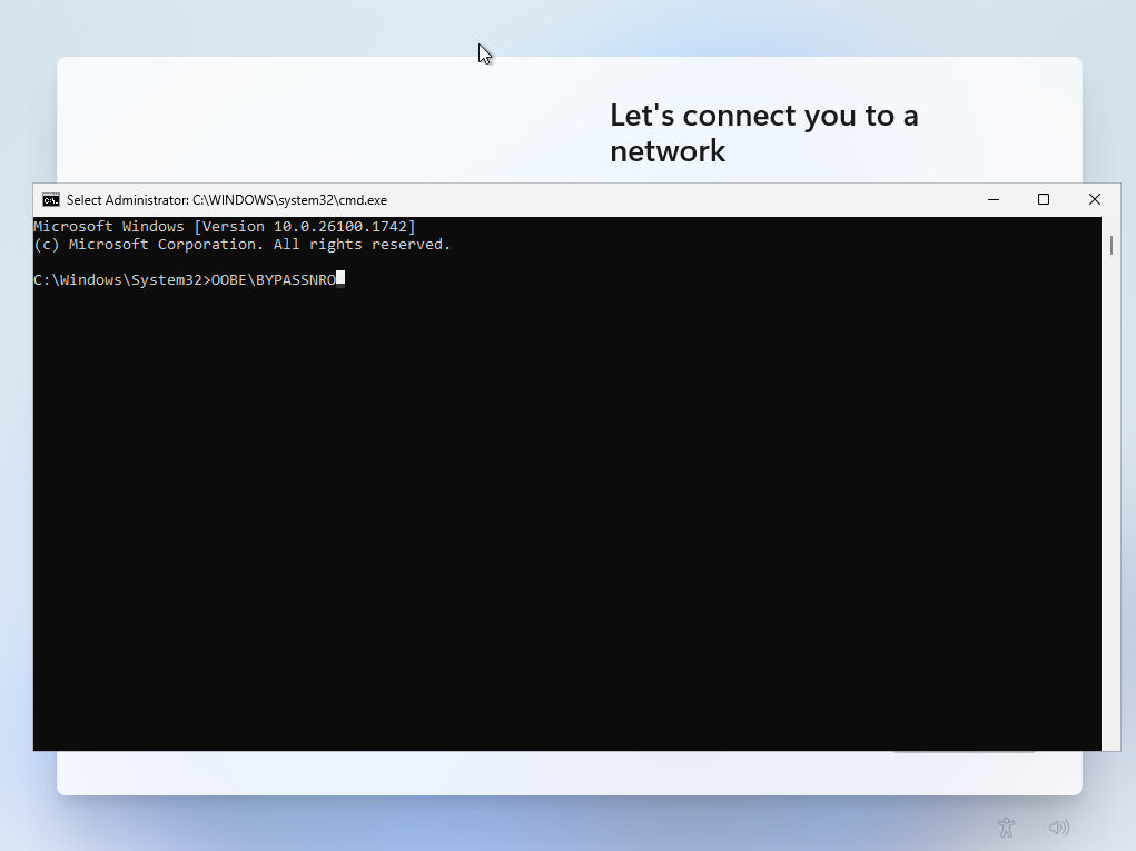 - Type "OOBE\BYPASSNRO" (not case sensitive)