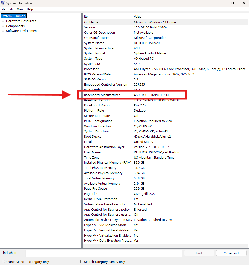 - In the System Information window, look to the right of BaseBoard Manufacturer -- this is your motherboard manufacturer