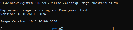Command: DISM /Online /Cleanup-Image /RestoreHealth