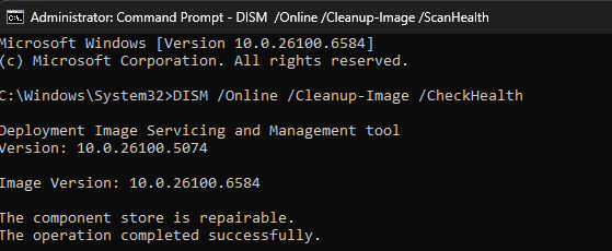 Command: DISM /Online /Cleanup-Image /CheckHealth