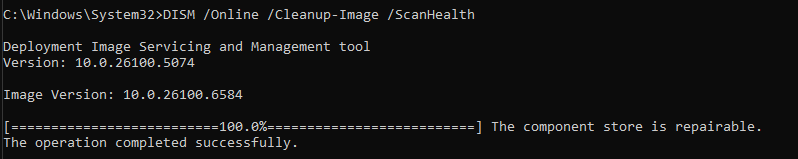Command: DISM /Online /Cleanup-Image /ScanHealth