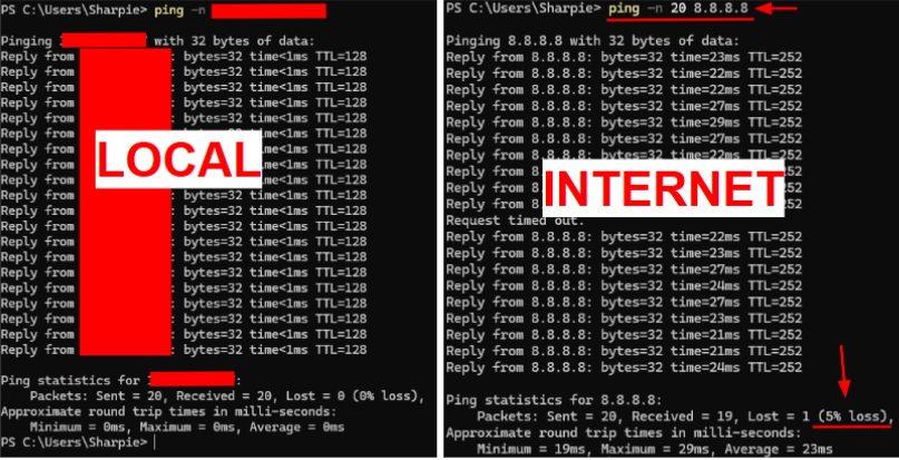 Test your router: Paste and run the command "ping -n 20 xxx.xxx.x.x", replacing the "x" with your IP address (you can find that by simply googling "What is my IP?" or by following step 4). 0% loss is ideal.